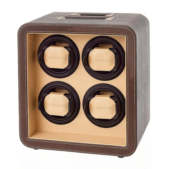 Leanschi Watch Winder 4 Watches Brown Leather WM04-CHOC