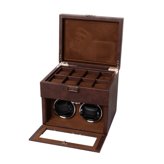 Piero Lazzari 8+2 Watch Winder 2 Watches Brown Leather PL1127
