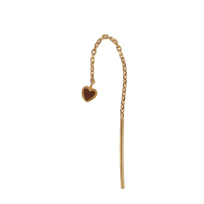 STINE A Jewelry Dangling Love Heart Enamel Earring Single Goldplated Silver 1364-02-Mocha